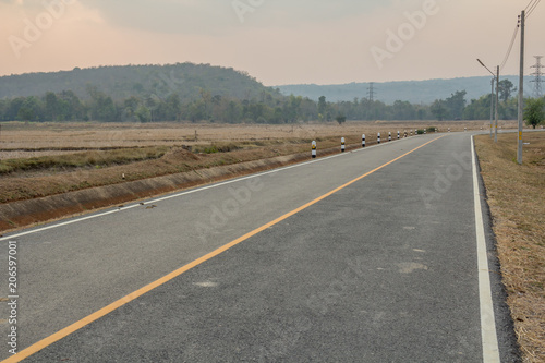 Fototapeta premium road up hill to the mountain top at at sunny sunset.