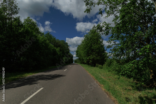 © Kozlik_mozlik, Fototapeta premium Road view on a summer day. Highways, roadside and white road line markings.
