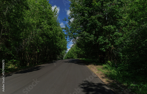 © Kozlik_mozlik, Fototapeta premium Road view on a summer day. Highways, roadside and white road line markings.