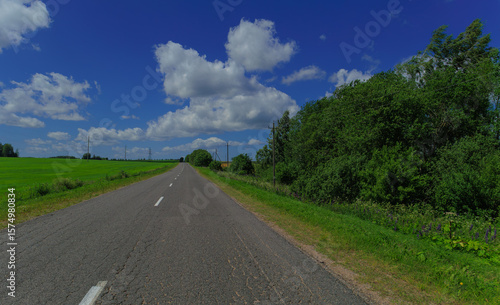 © Kozlik_mozlik, Fototapeta premium Road view on a summer day. Highways, roadside and white road line markings.