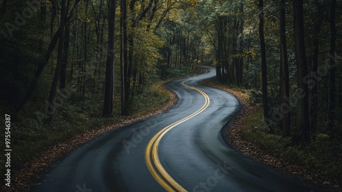 © yendisupiandi, Obraz premium Road Winding Through Dense Forest