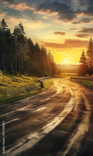 © Nipon, Fototapeta premium road with car driving on it