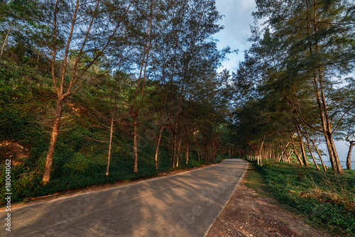 Obraz premium Road with pine trees on the side with tropical beach in Thailand.