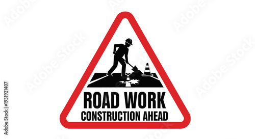 Obraz premium Road Work Construction Ahead Warning Sign.
