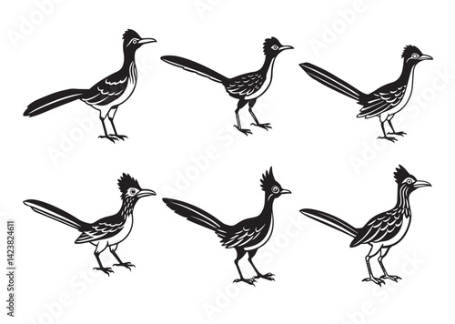 © Bismillah, Obraz premium Roadrunner bird Silhouette vector Set