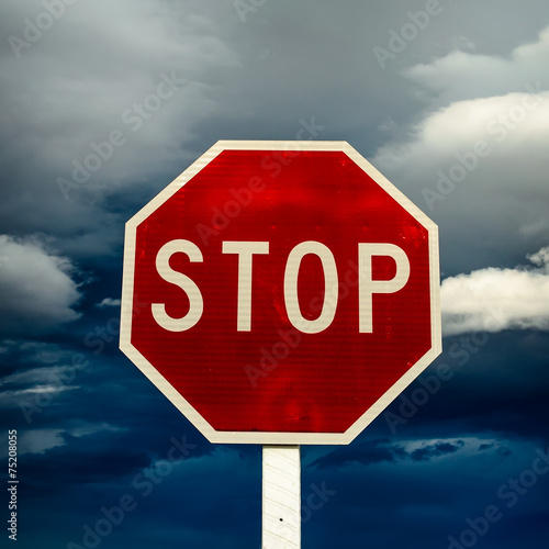 © Katarina S., Obraz premium roadside red stop sign on a cloudy background.