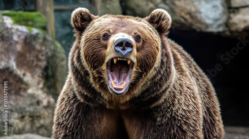 Obraz premium Roaring Brown Bear in Rocky Habitat Wildlife Power.