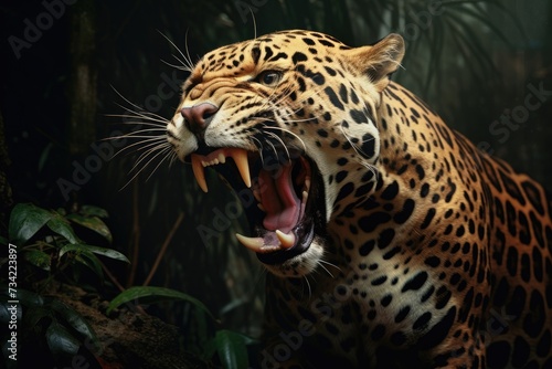 Obraz premium Roaring jaguar in the rainforest