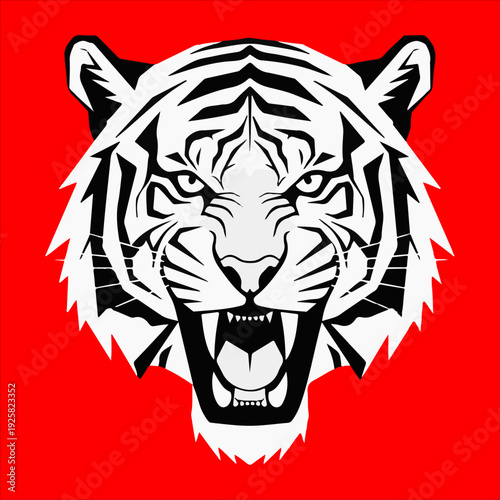Obraz premium Roaring Tiger Head Vector Silhouette - Fierce Animal Mascot Logo