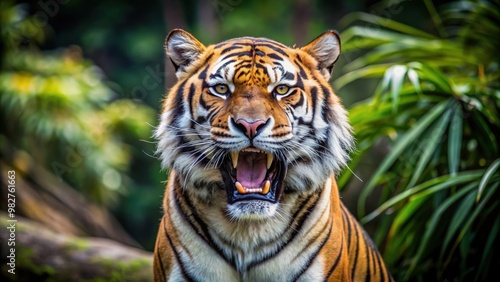 © somsak, Fototapeta premium Roaring tiger in the wild, showcasing its power and dominance, tiger, wild, animal, predator, roar, power, strength