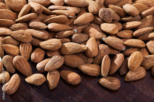 Obraz premium Roasted almonds on dark wood surface