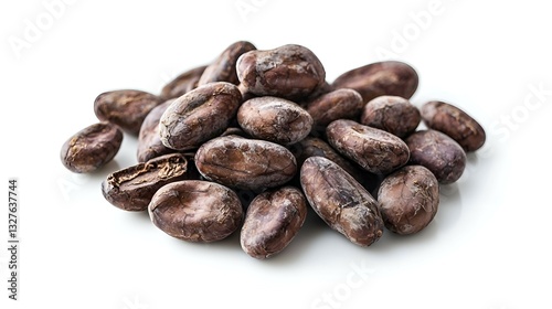 © Photo Dogg, Obraz premium Roasted cocoa beans on white background