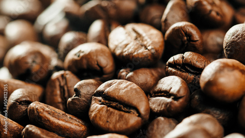 © Polonio Video, Fototapeta premium Roasted coffe beans with smoke coming out during cooking.