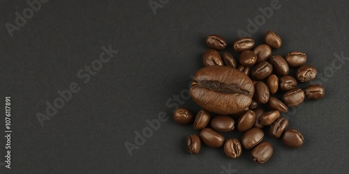 Naklejka premium Roasted coffee bean on a dark background, perfect for coffee lovers, morning, roasted, drink