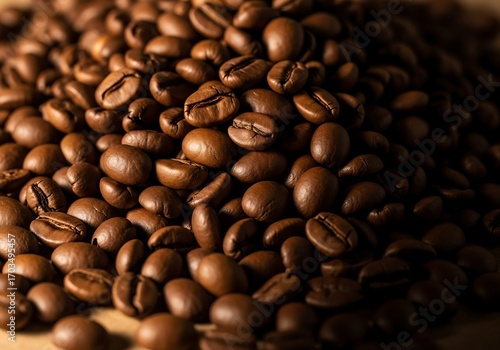 Naklejka premium Roasted coffee bean pile offering rich aroma and caffeine boost
