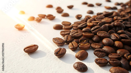 © kanjana, Naklejka premium Roasted Coffee Beans A Close-Up View of Rich, Aromatic Coffee Beans