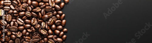 Fototapeta premium roasted coffee beans against a black background, perfect for coffee lovers...