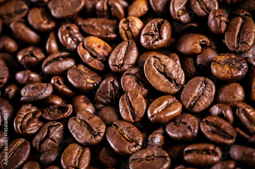 © Rychko Yevhen, Fototapeta premium roasted coffee beans background. brown texture