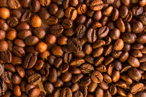 © Tetiana, Obraz premium Roasted coffee beans background. Coffee making concept