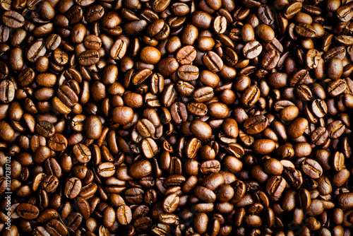 © saranyoo, Obraz premium Roasted Coffee Beans background texture.