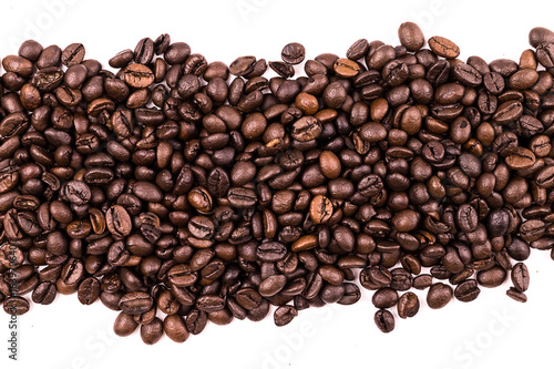 © Pakkapol, Naklejka premium Roasted Coffee Beans background texture isolated on white background with copy space for text