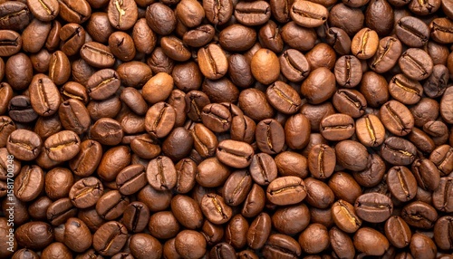 Fototapeta premium Roasted coffee beans background with rich brown tones and detailed texture