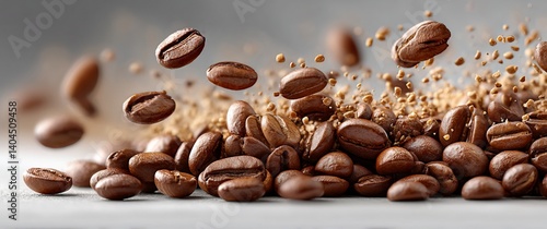 © Slamet, Obraz premium Roasted coffee beans burst and fall