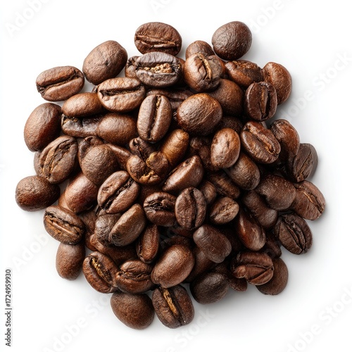 © Nur, Obraz premium Roasted coffee beans clustered, top-down view