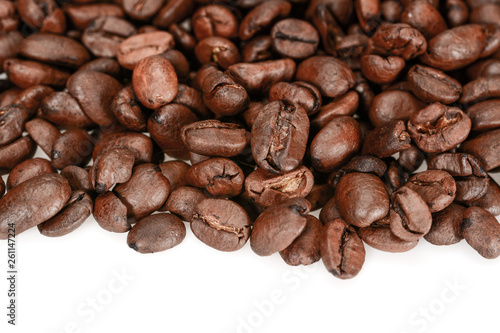 © JethroT, Naklejka premium Roasted coffee beans, dark brown close up, isolated on a white background