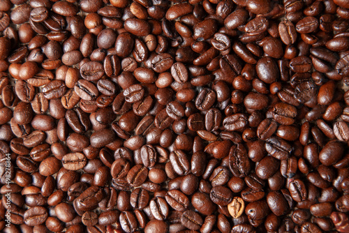 Fototapeta premium Roasted coffee beans, dark roasted coffee beans background.