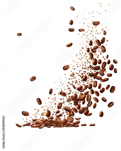 Obraz premium Roasted Coffee Beans Falling Dark Background