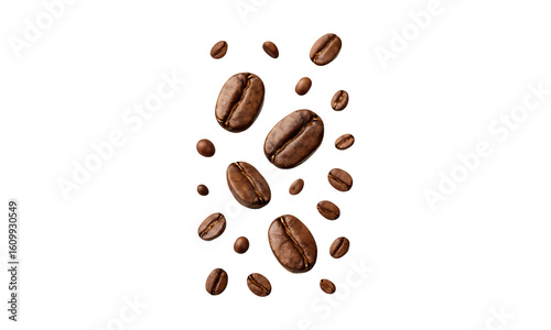 Obraz premium Roasted coffee beans falling isolated on transparent background