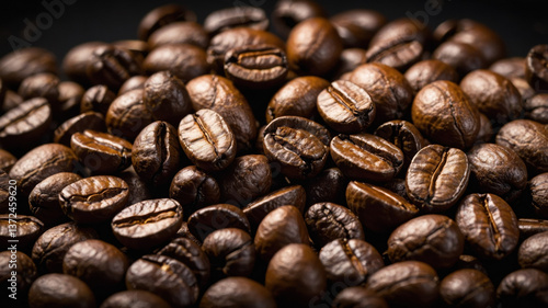 © Farhad, Naklejka premium Roasted coffee beans forming a textured background for coffee lovers
