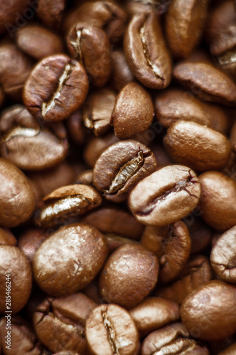 © VERSUSstudio, Naklejka premium Roasted coffee beans heap background