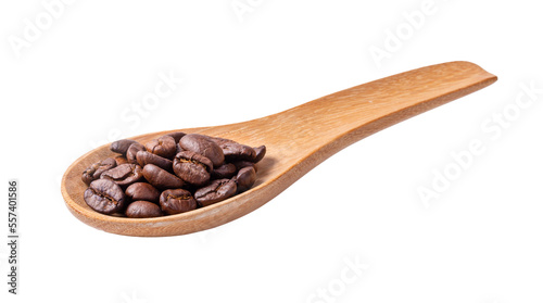 Fototapeta premium roasted coffee beans in wood spoon on transparent png