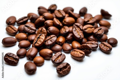 © Rainyphoto, Fototapeta premium Roasted coffee beans isolated on a pure white background, showcasing their rich brown tones and natural texture, heap, object