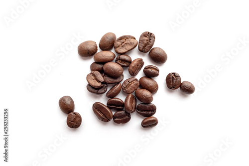 © Lifestyle Graphic, Naklejka premium Roasted coffee beans isolated on white background. Close-up.
