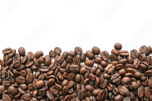 © Lifestyle Graphic, Naklejka premium Roasted coffee beans isolated on white background. Close-up.