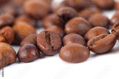 Naklejka premium Roasted coffee beans isolated on white background. Three coffee beans