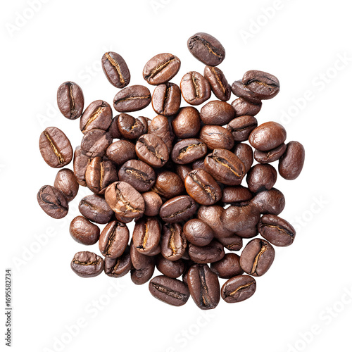 © ahmad musiyam, Naklejka premium Roasted coffee beans on a black background close up photography for food industry