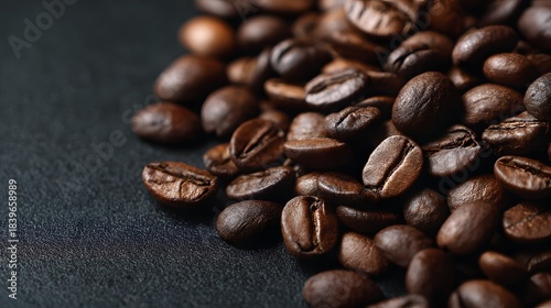 Fototapeta premium Roasted Coffee Beans on Black Matte Surface