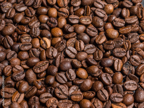 © Vladimir Arndt, Fototapeta premium Roasted coffee beans on dark background. Selective focus.