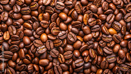 Obraz premium Roasted coffee beans on full frame background. Close-up