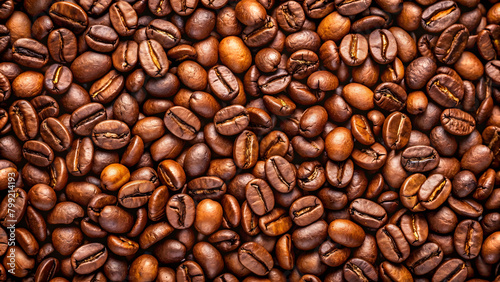 Obraz premium Roasted coffee beans on full frame background. Close-up