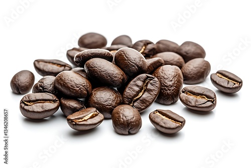 © rokeya, Fototapeta premium Roasted coffee beans pile isolated on white. (1)