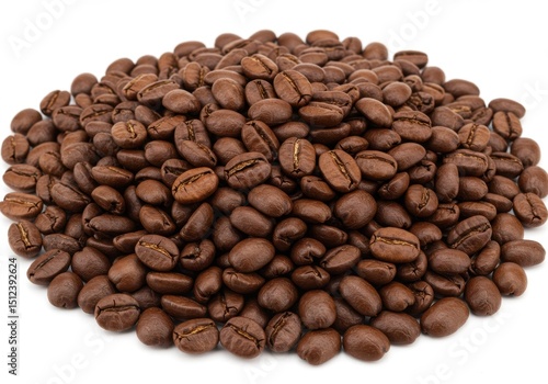 © NURUNNAHAR, Fototapeta premium Roasted coffee beans pile isolated on white background
