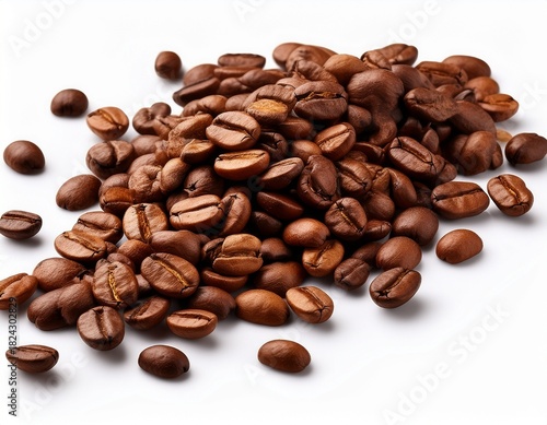 © Sophie, Fototapeta premium roasted coffee beans pile spilling from top corner isolated on white background