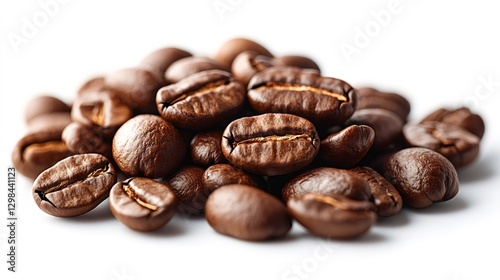 Fototapeta premium Roasted coffee beans piled up on white background