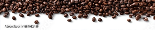 © Hasan, Naklejka premium Roasted coffee beans scattered against a white background