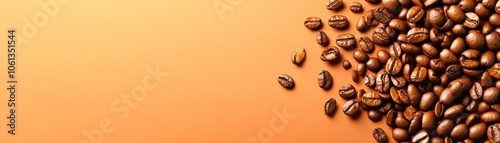 Naklejka premium Roasted Coffee Beans Scattered on Orange Background